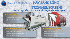 Máy sàng lồng (Trommel Screen) là thiết bị cơ khí chuyên dụng không thể thiếu trong các dây chuyền sản xuất hiện đại. Với khả năng phân loại vật liệu theo kích thước một cách chính xác và năng suất cao, máy sàng lồng đang được ứng dụng rộng rãi trong các ngành khai thác khoáng sản, vật liệu xây dựng, xử lý rác thải và tái chế.